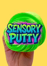 Sensory putty has a butterslime style texture, its thick and soft making it very holdable and mouldable, its perfect for swirling and squishing. Sensory putty is air reactive, which means if its left out of the jar it will dry up.